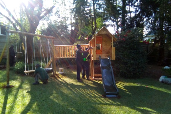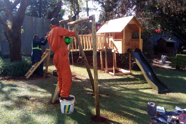 Expecting a child always gets most women excited and Salome was not an exception. One of her desires was that her child would have playing space. While shopping for toys and play equipment she realised that they were very costly and most had to be shipped from abroad. The only local producer making similar equipment using wood was equally expensive. She sent a picture of the kind of equipment she needed to her husband and asked him whether they could make it. He said yes. Her husband Kwame, (a Kenyan who chose a Ghanaian name) has an artistic nature, is a musician, does sculpting and woodwork. Already they had made their own home furniture. She then realised that starting a play equipment company could be a good business venture.