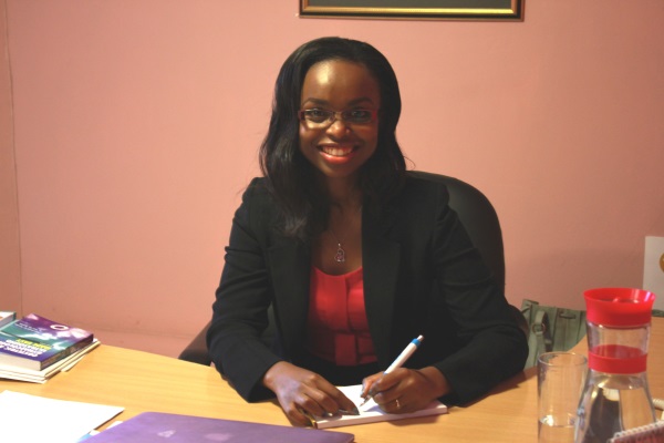 Sitting behind her desk, she could pass for a typical young professional in Nairobi; with her MacBook and iPhone meticulously placed on her desk. The clinical devices on her desk however tell you there is more. She is clad in a black skirt suit that goes slightly past her knees, her pink blouse breaks the black monotony and matches her warm personality. She is eloquent and with her curvy features and hair that flows graciously over her shoulders, she could be standing before a camera and working her way into the hearts of Kenyans keen on catching the latest news bulletin.